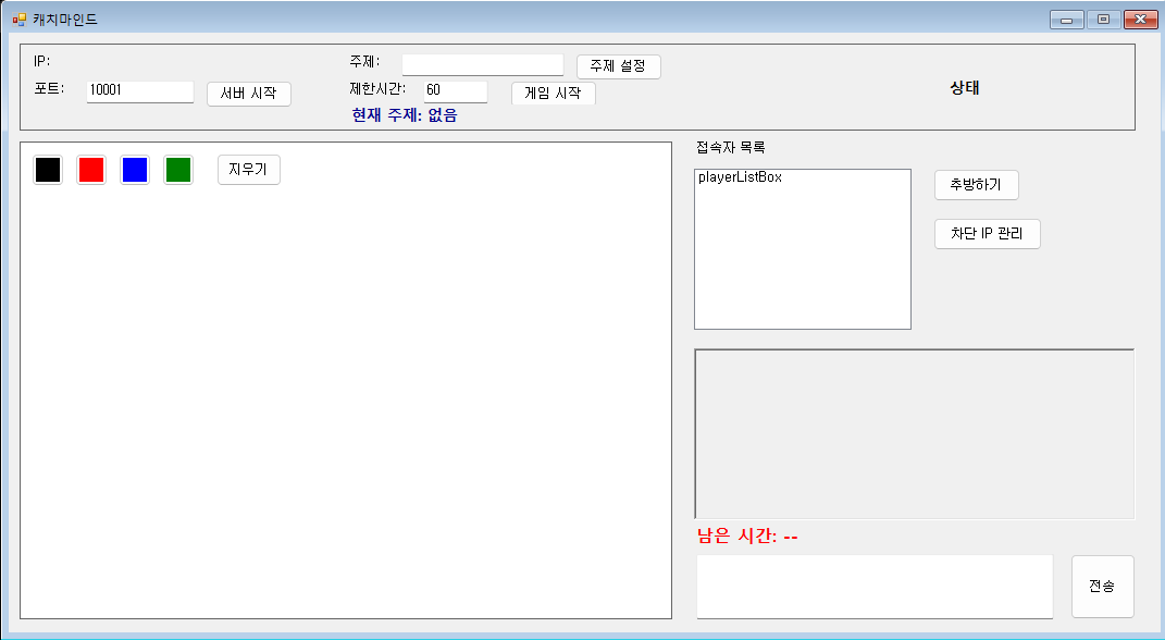 - 타이머 : 정해진 시간에 정답을 입력하고 그림을 그릴 수 있도록 하는 기능(술래가 정하는 시간)